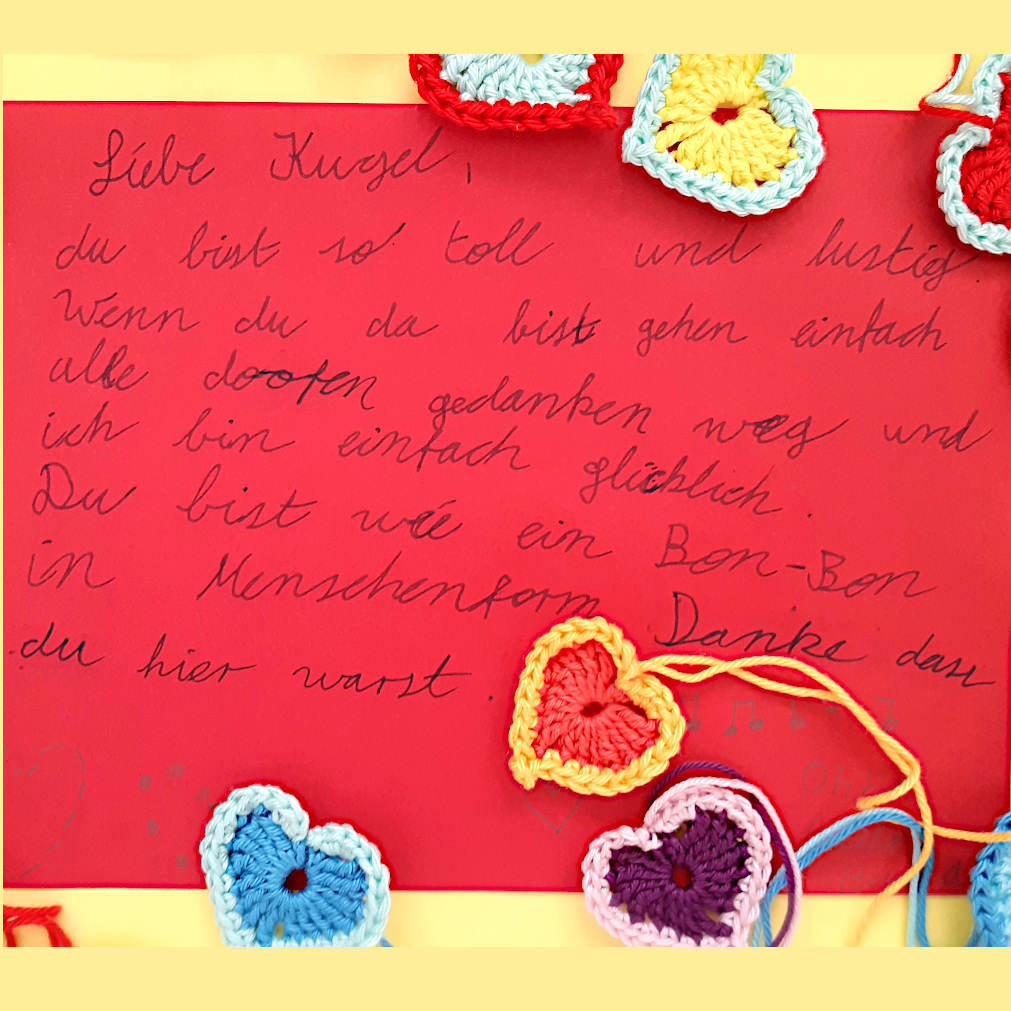 Kugel bringt Fröhlichkeit in die Schule. Ohne Wertung und pädagogischen Zeigefinger bietet sie emotionale Begleitung. Sie ist den Kindern ein Freund und erlebt mit ihnen gemeinsam den Schultag.