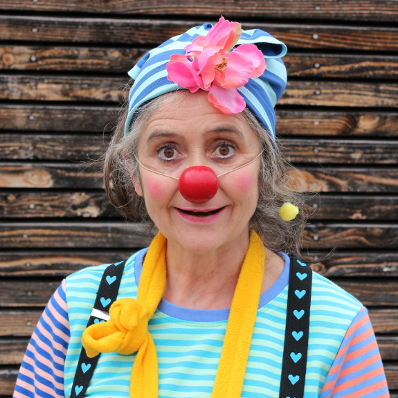 Rosina ist ein Klinikclown. Sie singt gerne und zupft munter auf der Ukulele.