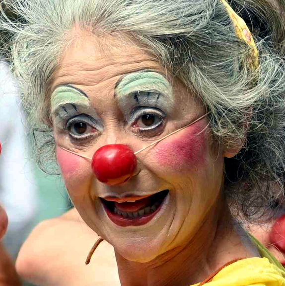 Der Clown stolpert vertrauensselig von Missgeschick zu Missgeschick und kann aus gemachten Fehlern nicht lernen.