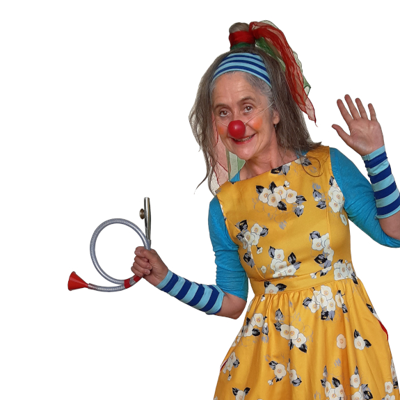 Rosina ist ein Klinikclown. Sie singt gerne und zupft munter auf der Ukulele.
